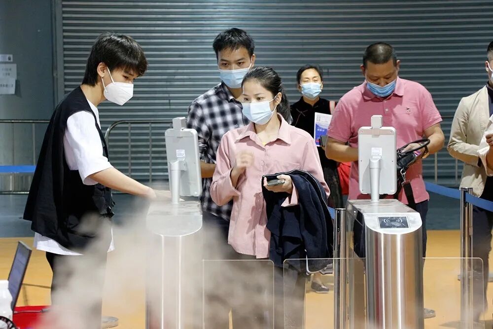 观众进入喷雾消毒区