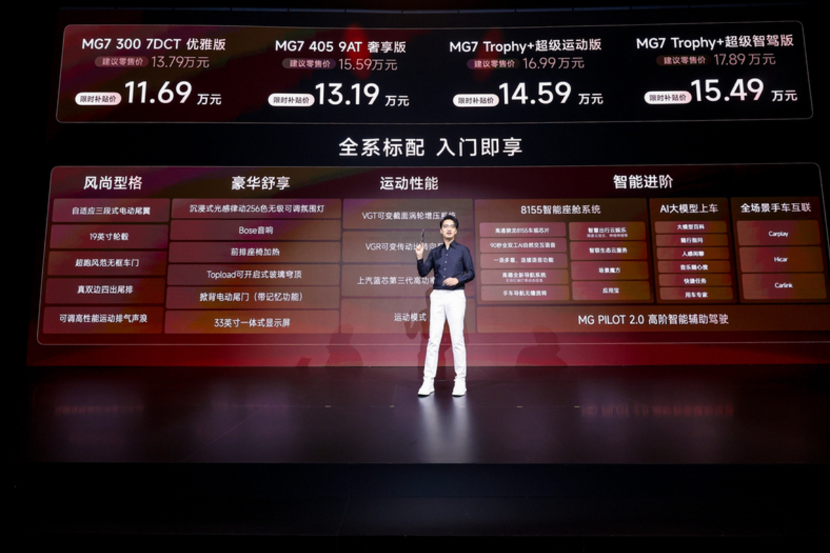 内饰方面,新车采用双12.3英寸贯穿式双连屏,同时空调面板也采用了科技感更强的触摸式控制。新车配备Lion雄狮智云4.0系统,支持FOTA远程升级,高配车型还提供AR实景导航、人脸识别以及SONY品牌音响等。