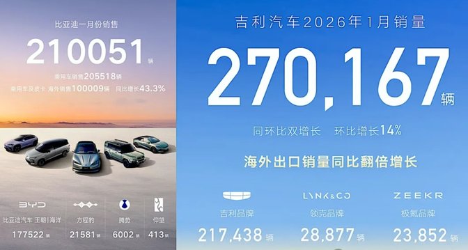 中国车市2026伊始,低调了两年的吉利,居然悄悄反超比亚迪,重新拿回了车市销冠宝座!
